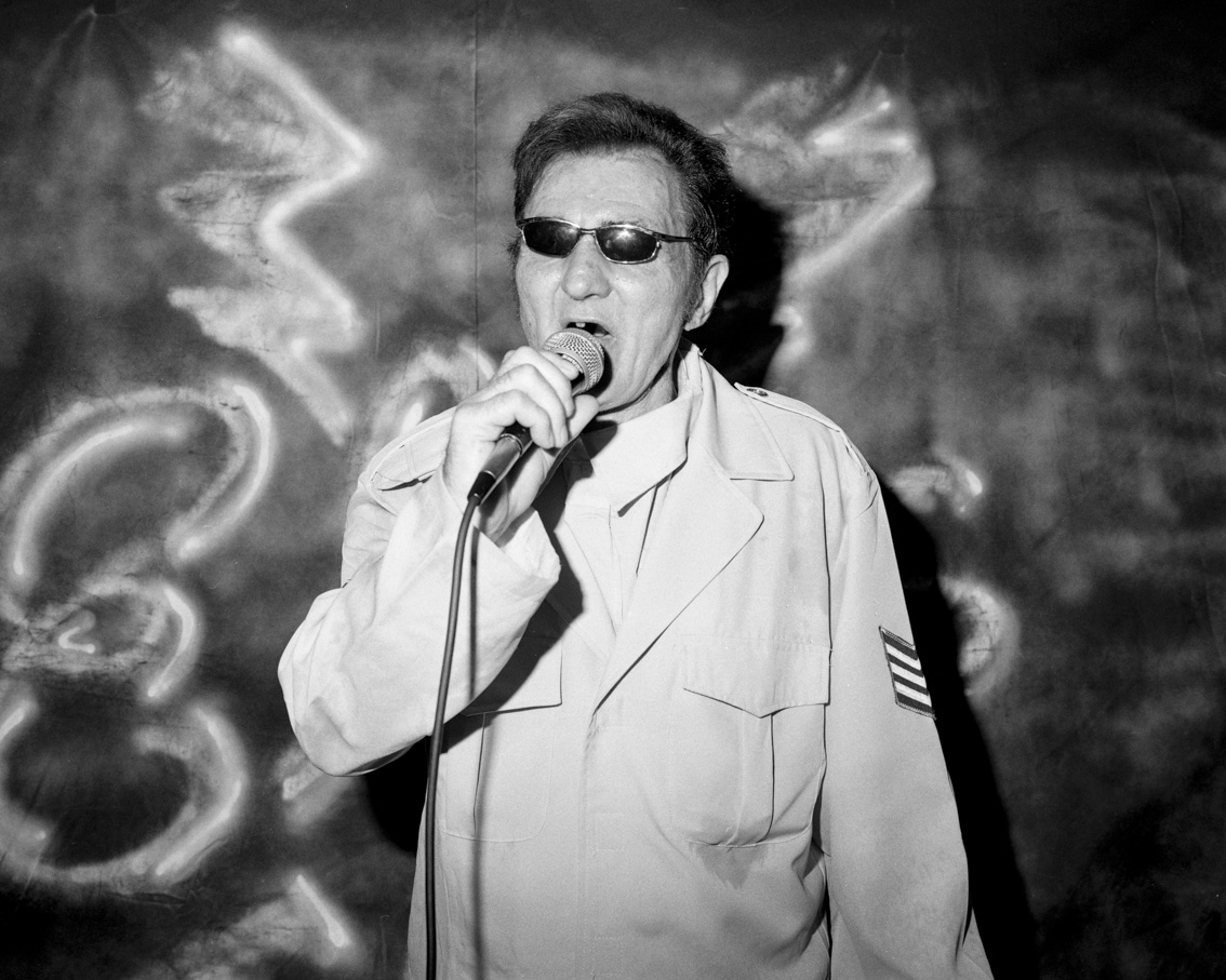 Without saying a word, he makes his way to the makeshift stage. He picks up the microphone. The few people in the bar remain oblivious to the scene, their eyes fixed on their half-finished pints. The music starts.